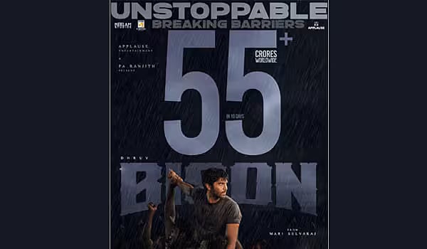 வாழை படத்தினை தொடர்ந்து மாரி செல்வராஜின் பைசன் திரைப்படமும் வணிக ரீதியாக வெற்றி பெரும் என்று எதிர்பார்க்கபடும் நிலையில், இந்த படத்தின் முதல் வசூலாக ஒரு நாளில் 7 முதல் 8 கோடி தாண்டி இருந்தநிலையில், தற்பொழுது 10 நாட்களில் 55 கோடி ரூபாய் வசூல்(Bison Box Office Collection Worldwide Total) செய்துள்ளது என்று படக்குழு அதிகாரப்பூர்வ அறிவிப்பை வெளியிட்டுள்ளது. சமீப நாட்களின் முன் செய்தியாளர்கள் சந்திப்பில் நடிகர் துருவ் விக்ரம், நடித்த படங்களை தாண்டி இதுவே எனது முதல் படம் என்று பைசன் திரைப்படத்தை கூறி பெருமிதம் தெரிவித்துள்ளார். இந்நிலையில், திரையில் பார்க்கமுடியாத பைசன் திரைப்படத்தை மாரி செல்வராஜ், துருவ் விக்ரம் ரசிகர்கள் ஓடிடி வெளியீட்டிற்கு காத்திருக்கின்றனர். தற்பொழுது 50 கோடியை தாண்டி வசூல் செய்து கொண்டிருக்கும் பைசன் திரைப்படம், ஓடிடியில் வெளியானால் அதன் வரவேற்பு எவ்வாறு இருக்கும் என்று ரசிகர்கள் கிசுகிசுத்து வருகின்றனர்.
