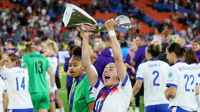 England Wins Women's Football Euro Final 2025 : சுவிட்சர்லாந்தின் பெர்ன் நகரில் ஐரோப்பிய நாடுகளுக்கு இடையிலான, 14வது யூரோ கோப்பை மகளிர் கால்பந்து போட்டிகள் நடந்து வருகின்றன. இறுதிப் போட்டியில், ஸ்பெயின் - இங்கிலாந்து அணிகள் பலப்பரீட்சை நடத்தின. 2022ல் நடைபெற்ற மகளிர் யூரோ கோப்பை தொடரில் முதன்முறையாக பட்டம் வென்றிருந்த இங்கிலாந்து, கெத்தாக களமிறங்கியது.