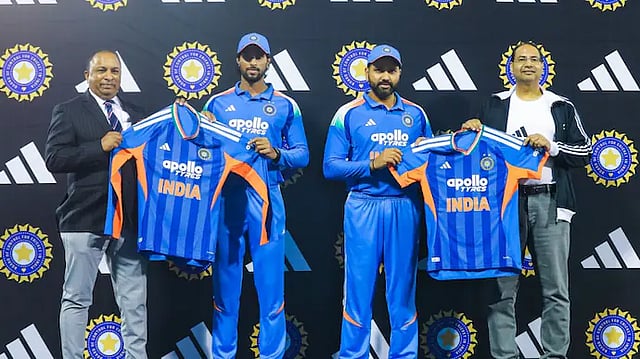 ஜெர்சியில் இந்திய அணி இரண்டு டி20 உலகக் கோப்பைகளை வென்றதை நினைவுக்கூறும் வகையில் இந்திய இலச்சினைக்கு மேல் இரண்டு ஸ்டார்கள் பொறிக்கப்பட்டுள்ளது. இதுதவிர இந்த புதிய ஜெர்சியானது நீலம், ஆரஞ்சு மற்றும் வெள்ளை நிறங்களைக் கொண்டு கால்பந்து அணிகளின் ஜெர்சியைப் போல வடிவமைக்கப்பட்டுள்ளது.