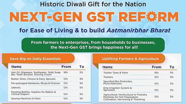GST 2.O Next Gen Reforms Rate 2025: அனைவரும் மிகவும் எதிர்பார்த்த ஜிஎஸ்டி வரி விதிப்பு குறைப்பு அறிவிக்கப்பட்டு இருக்கிறது. நடைமுறையில் உள்ள நான்கு அடுக்கு வரி, 18%, 5% என இரண்டு அடுக்குகளாக குறைக்கப்பட்டு உள்ளது. இந்த நடவடிக்கை சாமான்ய மக்களின் வாழ்க்கையை மேம்படுத்தும் என்று, பிரதமர் நரேந்திர மோடி தெரிவித்து இருக்கிறார். உப்பு முதல் கார் வரை பெரும்பாலான பொருட்களின் விலை குறைய இருக்கிறது. செப்டம்பர் 22ம் தேதி முதல்(Next Gen GST Reforms Effective Date) நடைமுறைக்கு வரும் இந்த மாற்றத்தால் விலை குறையும், விலை உயரும் பொருட்கள் குறித்து விரிவாக பார்ப்போம்.