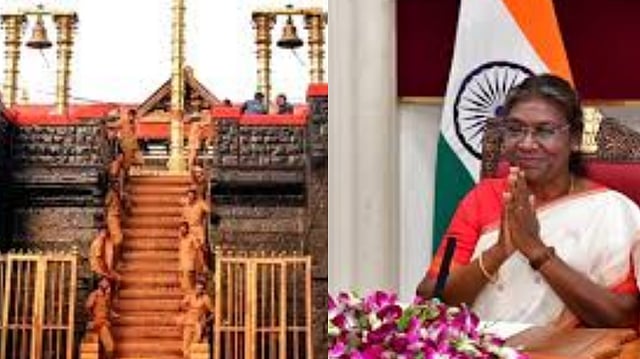 President Droupadi Murmu Visit Sabarimala Ayyappa Temple in Kerala : உலகப் புகழ்பெற்ற கேரள மாநிலம் சபரிமலையில் உள்ள ஐயப்பன் கோவிலுக்கு ஆண்டு தோறும் லட்சக் கணக்கான பக்தர்கள் வருகை தந்து வழிபட்டு செல்கிறார்கள். மண்டல பூஜை, மகர விளக்கு பூஜையின் போது கூட்டம் அலைமோதும். ஐயப்பனை தரிசிக்க சில சமயம் 36 மணி நேரம் கூட பிடிக்கும். மாதம் தோறும் கோவில் நடை திறக்கும் போது, ஆன்லைனில் முன்பதிவு செய்த பக்தர்கள் ஐயப்பனை வழிபட அனுமதிக்கப்படுகிறார்கள்.