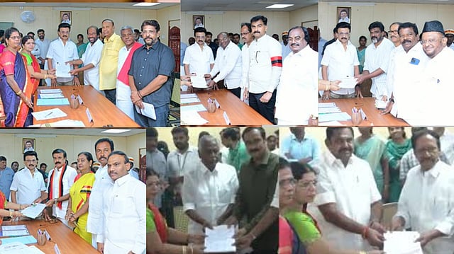 திமுக மற்றும் கூட்டணி கட்சிகள் சார்பில் போட்டியிடும் திருச்சி சிவா, கான்ஸ்டன்டைன் ரவீந்திரன், கிறிஸ்டோபர் திலக், எல்கே சுதீஷ் ஆகியோர் சென்னை தலைமைச் செயலகத்தில் வேட்பு மனுக்களை தாக்கல் செய்தனர்.