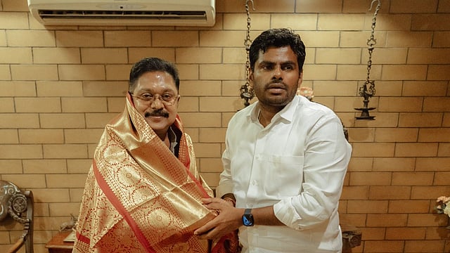 Annamalai Meet TTV Dhinakaran : அதிமுகவில் இருந்து விலகிய டிடிவி. தினகரன் அம்மா மக்கள் முன்னேற்ற கழகம் என்ற பெயரில் தனிக்கட்சி நடத்தி வருகிறார். சசிகலா, ஓபிஎஸ் உள்ளிட்டோர் கட்சியில் மீண்டும் இணைய எடுத்த முயற்சிகள் எதுவும் இன்று வரை கைகூடவில்லை. இந்தநிலையில், டிடிவி தினகரனை, தமிழக பாஜக முன்னாள் தலைவர் அண்ணாமலை நேற்று சந்தித்து சுமார் ஒன்றரை மணி நேரம் ஆலோசனை நடத்தினார்.