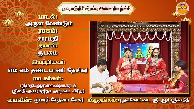 Navaratri 2025 Special Music Event : நவராத்திரி சிறப்பு இசை நிகழ்ச்சி 2025 - அருள வேண்டும் தாயே பாடல் | Navaratri 2025 | Arula Vendum Thaye Song | MM Dhandapani Desikar Tamil Songs | Carnatic Songs | Thamizh Alai Aanmikam