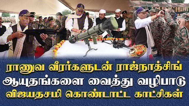 Minister Rajnath Singh Performs Shastra Puja with Indian Army : ராணுவ வீரர்களுடன் ராஜ்நாத் சிங்.. ஆயுதங்களை வைத்து வழிபாடு.. விஜயதசமி கொண்டாட்ட காட்சிகள் | Vijayadashami 2025 | Defence Minister Rajnath Singh | Indian Army | Shastra Puja 2025 | Thamizh Alai