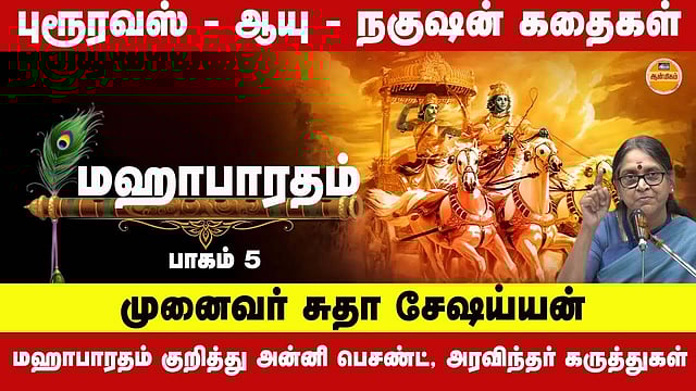 Dr. Sudha Seshayyan Speech : புரூரவஸ் - ஆயு - நகுஷன் கதைகள்.. மஹாபாரதம் பாகம் 5 முனைவர் சுதா சேஷய்யன், மஹாபாரதம் குறித்து அன்னி பெசண்ட், அரவிந்தர் கருத்துகள். மதுரத்வனி - மஹாபாரதம் தொடர் சொற்பொழிவு. | Mahabharatham Part 5 Tamil | Dr. Sudha Seshayyan Latest Speech | Sri Aurobindo | Annie Besant | Arkay Convention Centre Mylapore | Thamizh Alai Aanmikam