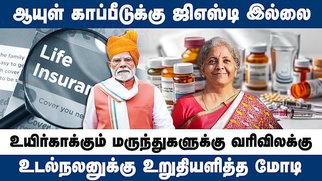 56th GST Council Meeting 2025 Reforms : ஆயுள் காப்பீடுக்கு ஜிஎஸ்டி இல்லை.. உயிர்காக்கும் மருந்துகளுக்கு வரிவிலக்கு.. உடல்நலனுக்கு உறுதியளித்த மோடி | Next Gen GST Reforms 2025 | PM Narendra Modi | Nirmala Sitharaman | Health Insurance | Life Insurance | Thamizh Alai