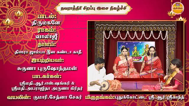 பாடகர்கள் : ஶ்ரீமதி. ஆர்.எஸ். ஷங்கரி மற்றும் ஶ்ரீமதி. அபராஜிதா அருணா கிரிதர்
