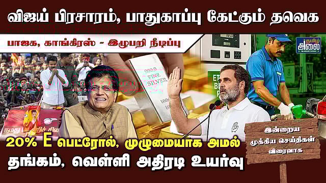 1. விஜய் பிரசாரத்திற்கு பாதுகாப்பு, தவெக நிர்வாகிகள் மனு