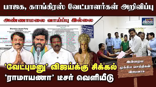 Today Headlines | தலைப்புச் செய்திகள் | Tamil News | BJP Candidate List 2026 | Tamil Nadu Congress Candidate List 2026 | TVK Vijay Perambur Constituency Nomination Status | Election Commission New Exit Polls Guidelines 2026 | Gold Rate Increased Today in India | ECI Announces 5 States Assembly Elections 2026 Date As Public Holiday | Election Commission Appointed Sandeep Roy Rathore as New DGP of Tamil Nadu | Chennai Egmore Railway Station Redevelopment Work Complete Train Schedule New Update in Tamil | Good Friday 2026 : Christians Observe Special Prayers Easter Sunday 2026 | Iran Attack on Gulf Countries | Ranbir Kapoor Ramayana Movie Teaser Released Today | Thamizh Alai
