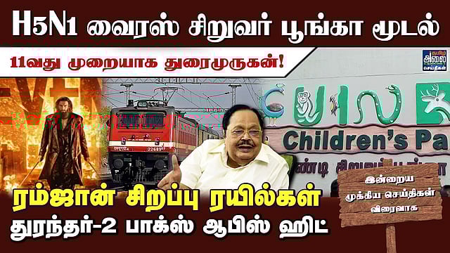 Today Headlines | தலைப்புச் செய்திகள் | Tamil News | H1N1 Virus Reflect Guindy Children's Park Closed Latest News in Tamil | Ramadan | DMK Minister Durai Murugan Contest in Katpadi Assembly Constituency 11th Time | Seeman Election Campaign for TN Election 2026 | Special Trains for Ramadan 2026 | 1st Std To 9th Std TN Public Exam Time Table 2026 Tamil Nadu | Puducherry CM N. Rangasamy Contest Two Constituency in 2026 Assembly Election | Chennai Egmore Railway Station Redevelopment | Indian youth Bhupathiraju Anmish Vermafrom Visakhapatnam has set a Guinness World Record by climbing the highest volcanic peaks on 7 continents | Dhurandhar 2 Box Office Collection Day 2 Update in Tamil | Thamizh Alai Seithigal